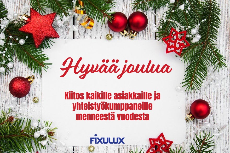 Kiitos kaikille yhteistyökumppaneille menneestä vuodesta, hyvää ja rauhallista joulun aikaa kaikille sekä onnellista tulee vuotta.